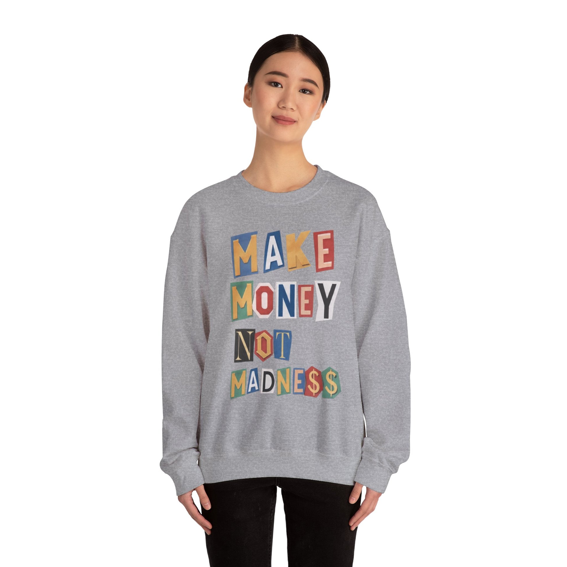 This cozy crewneck brings bold, playful energy to everyday wear. The vintage ransom-note lettering—each letter a different color and texture—spells out a cheeky reminder that nudges toward ambition and calm. Soft yet substantial, the mid-weight fabric and classic fit make it an easy layer for cool mornings, late-night work sessions, or weekend coffee runs. Small details like durable double-needle stitching, a tear-away label, and options for embroidered accents give it a thoughtful, well-made feel that ages nicely. Wear it to anchor a casual outfit or let it spark conversations among friends and collaborators.